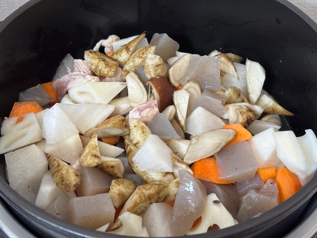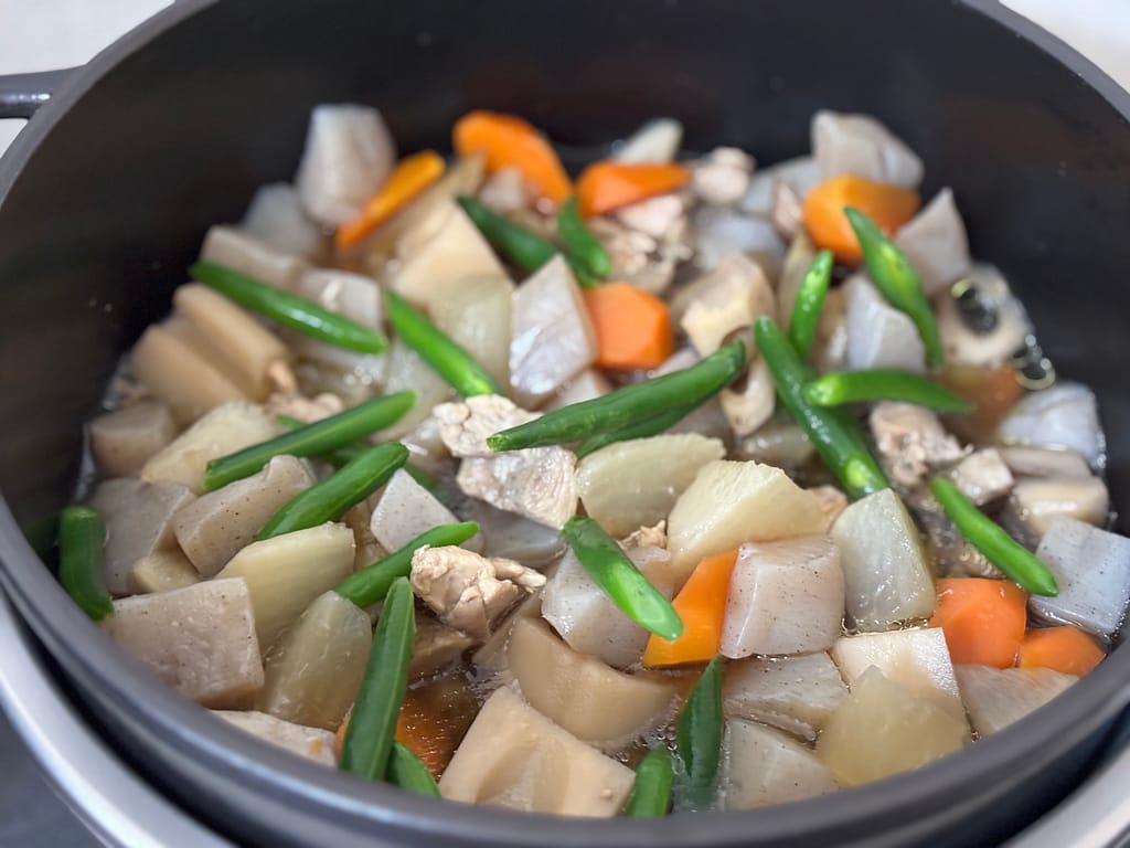 バーミキュラ ライスポットで煮物料理を作ると 食材の旨味がぐっと引き出される ので、筑前煮との相性は抜群。