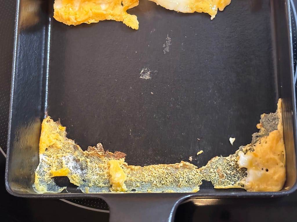 「煙が出るまでしっかりと予熱」を意識してリベンジしてみたら焦げ付かず綺麗に出来ました!