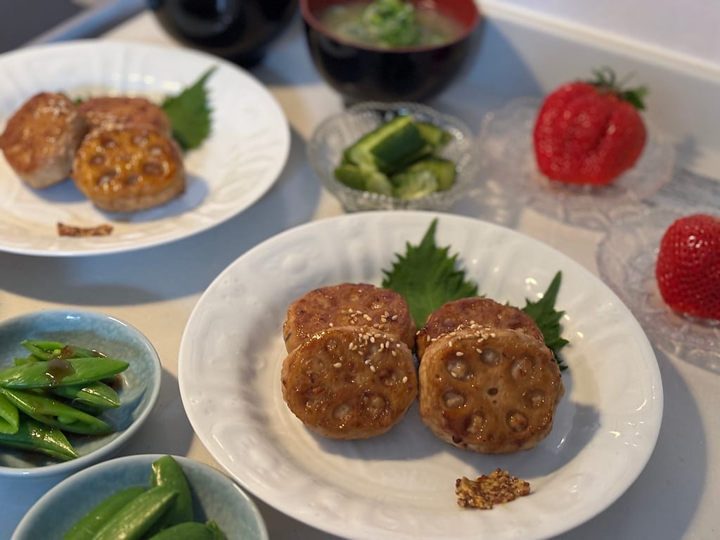 今日の夜ごはんのメインはれんこんのはさみ焼き でした!