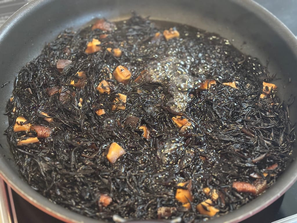 私は干し椎茸の戻し汁を使って煮込むのですが、干し椎茸の旨みが染み渡ったひじき煮は最高です。