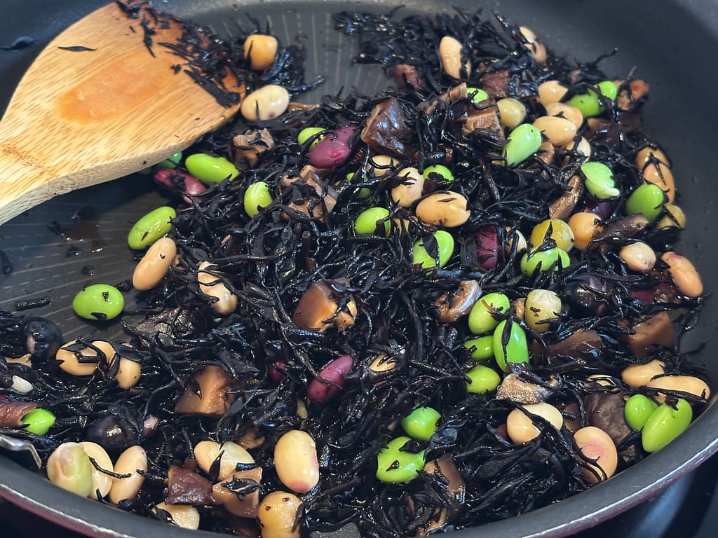 ひじき煮にサラダ大豆を加えることで、鉄分やカルシウム、食物繊維の相乗効果が期待できます。