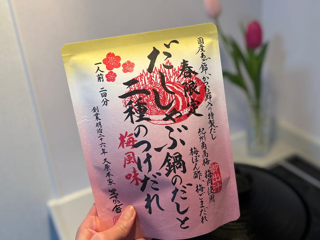 今日は茅乃舎の春限定商品「だししゃぶ鍋のだしと二種のつけだれ 梅風味」を食べました。