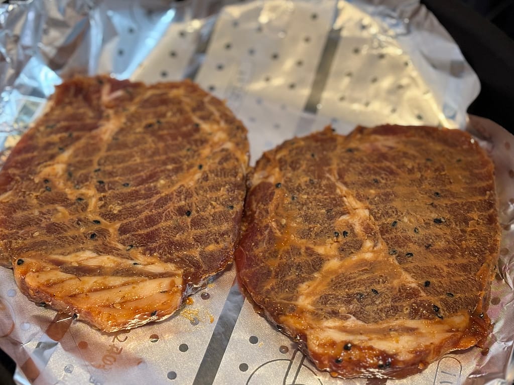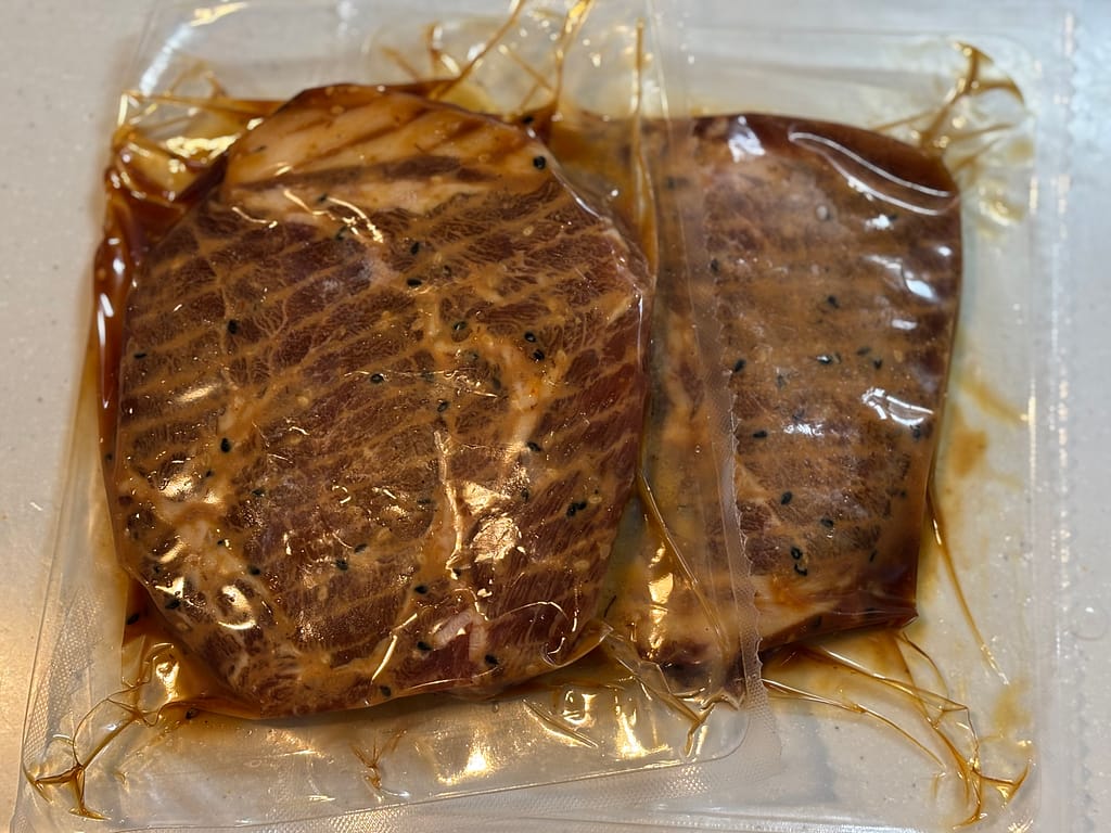 そのまま焼いて食べても、ちょっと工夫しても美味しい、最高の(味付き)お肉です。