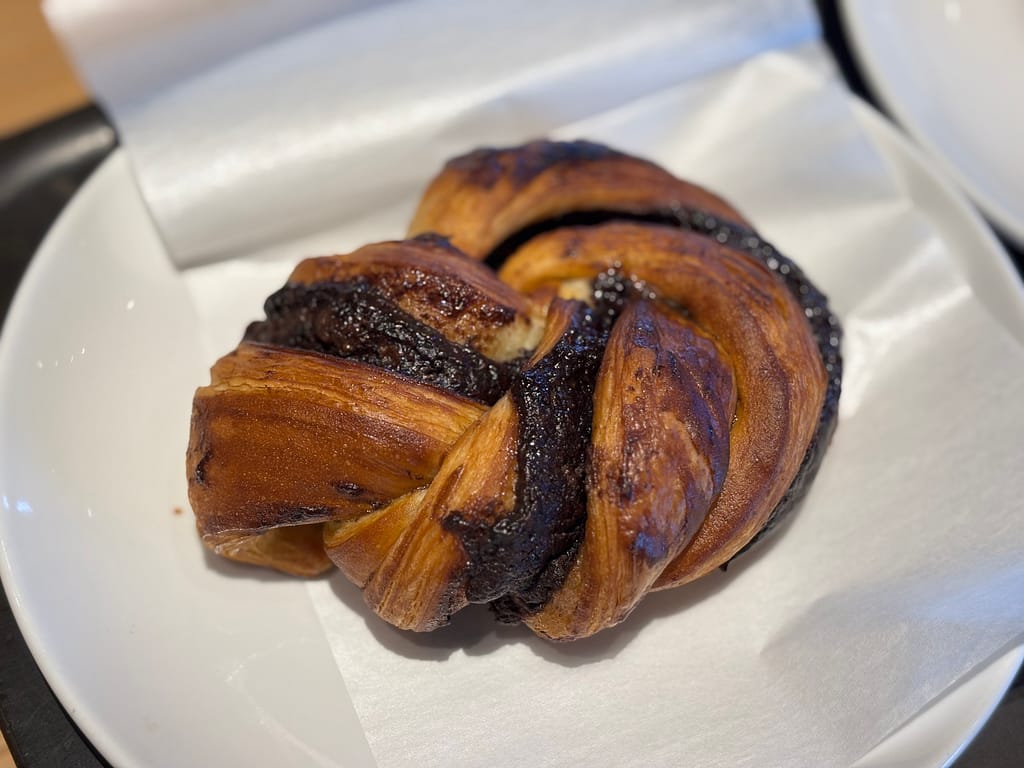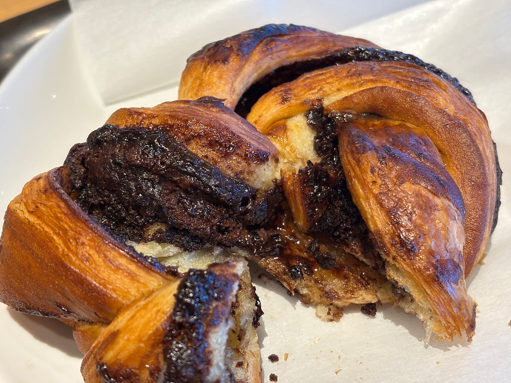バブカはチョコレートやシナモンのフィリングを編み込んだ、渦巻き状の層が特徴的な菓子パン。