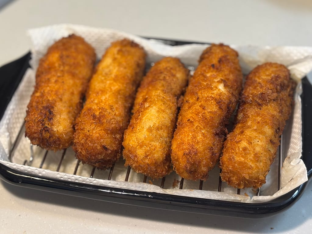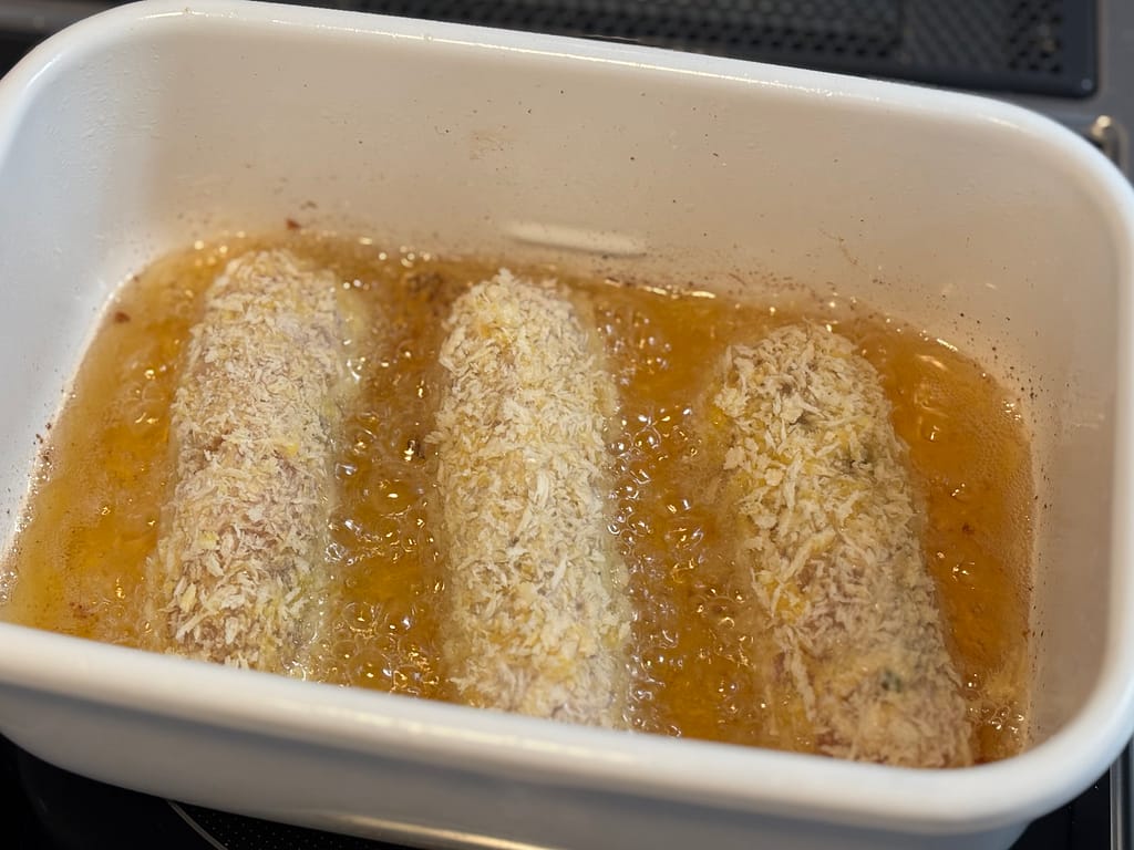 (上手に巻けなくても、衣をつけた後ラップでキャンデイ状に包み冷蔵庫でしばらく置いておくと綺麗になります♡)