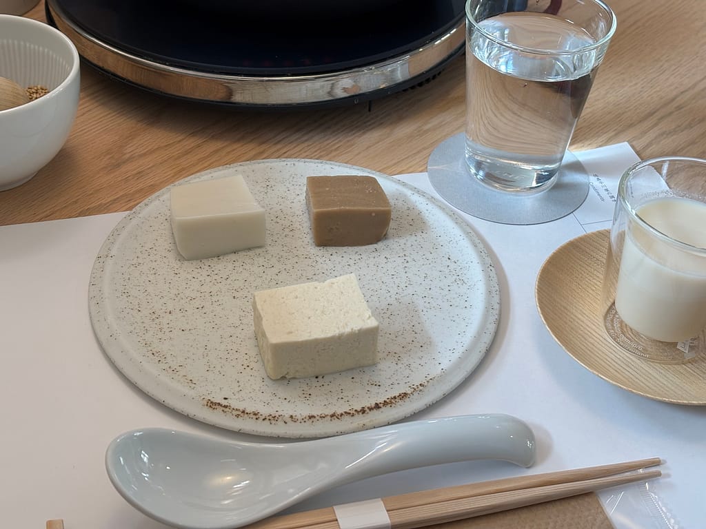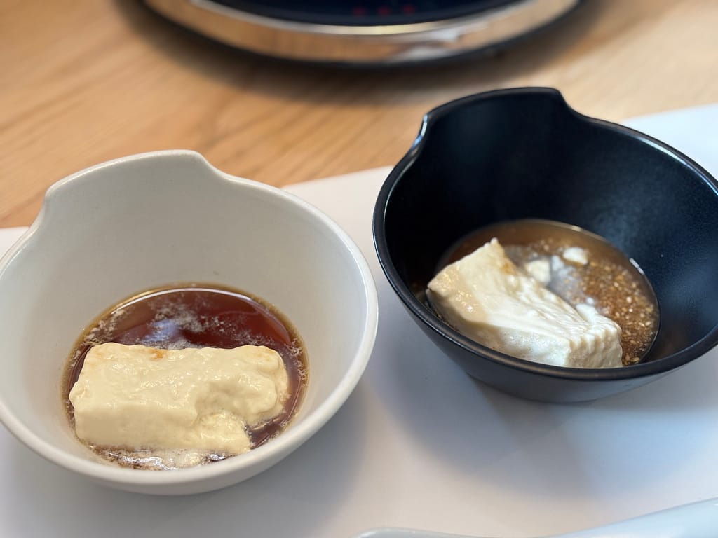 それぞれの豆腐には、塩やタレ、オリーブオイルなど、味を引き立てる調味料を店員さんが教えてくれて、どれも絶品でした。