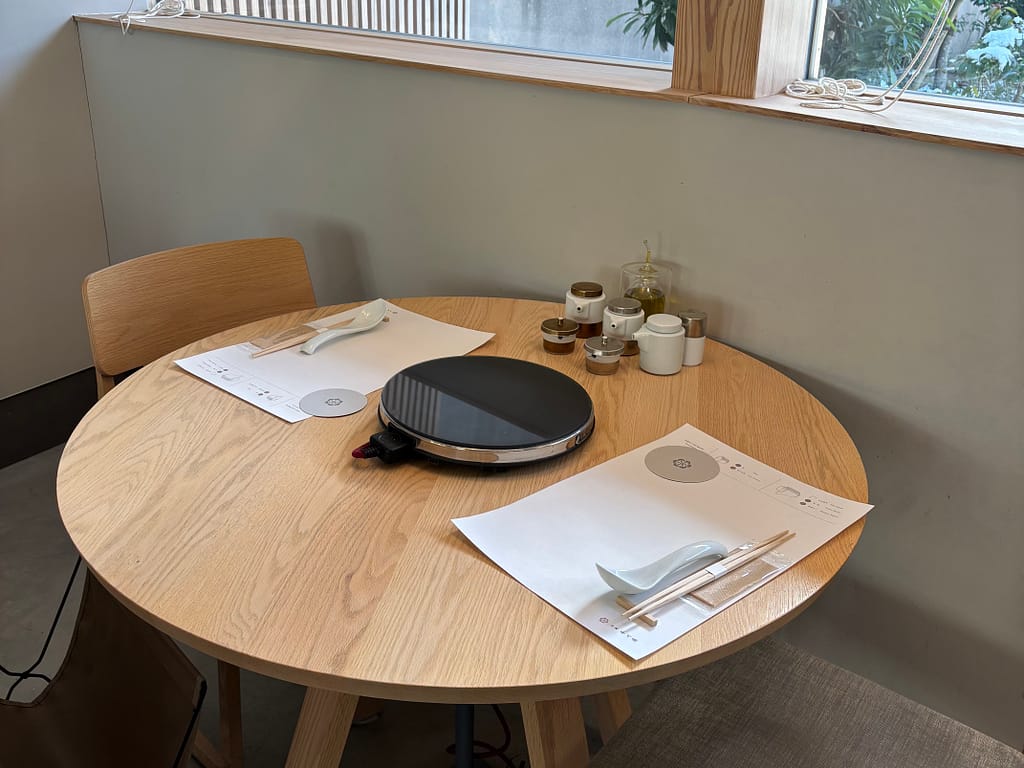 店内のテーブルも木の温かみを感じるデザインで、器や調味料入れまでこだわりが感じられる素敵な雰囲気。