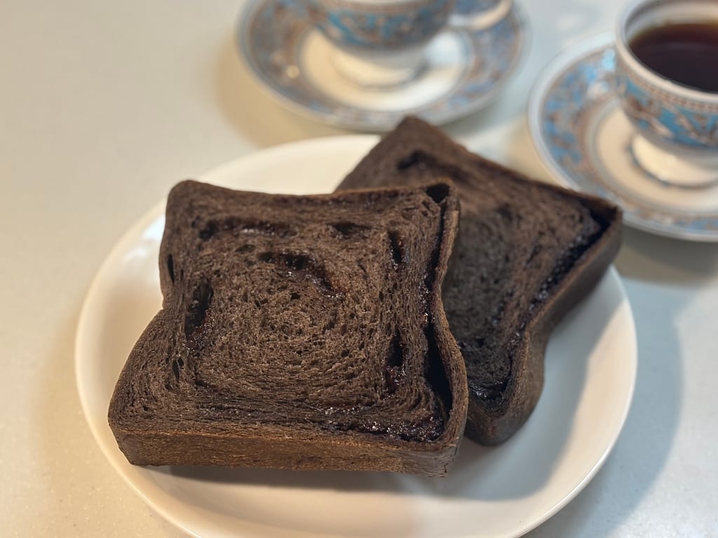 ベルギー産クーベルチュールチョコレートがたっぷり練りこまれ、カカオの香りがしっかり感じられて本当に贅沢な味わい。今日の朝ごはんにいただいたのですが、一口ごとに広がる高級感に幸せな気持ちでいっぱいになりました♡