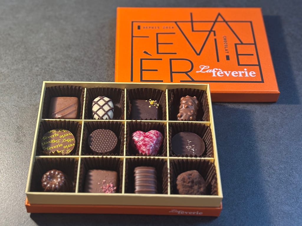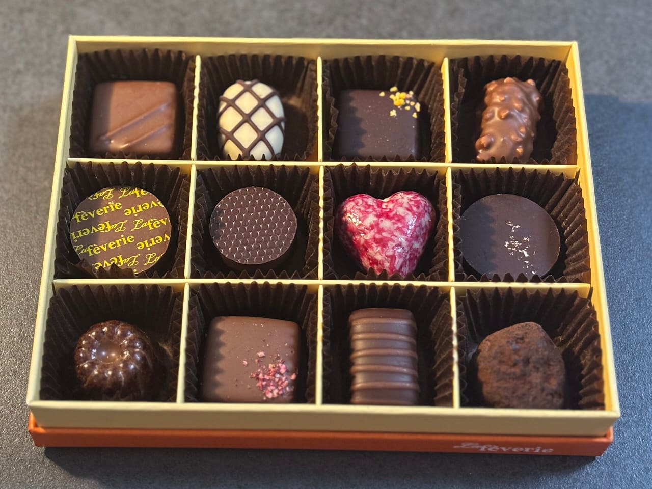 鮮やかなオレンジの箱を開けると、キラキラと輝く美しいチョコレートがずらり。あまりにも美しすぎて、まだ食べれていないのですが(笑)、ちょっと贅沢なコーヒーを用意して、ゆっくり味わおうと思っています。