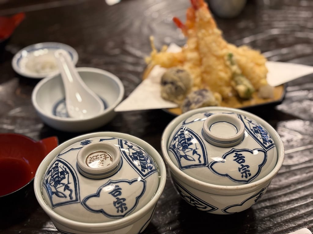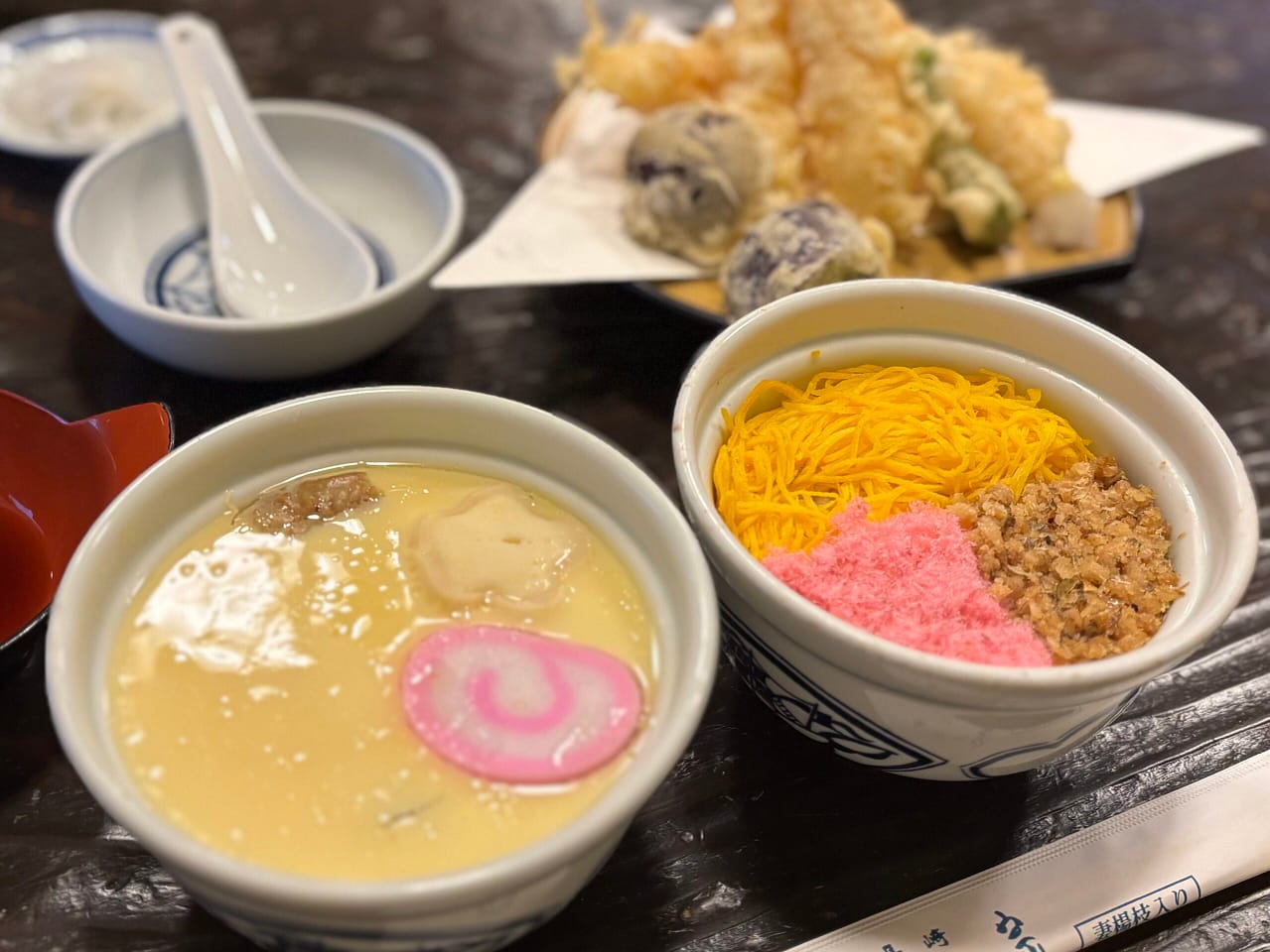 私が注文したのは 一人前セット(茶碗蒸し+蒸し寿司)と天ぷら。