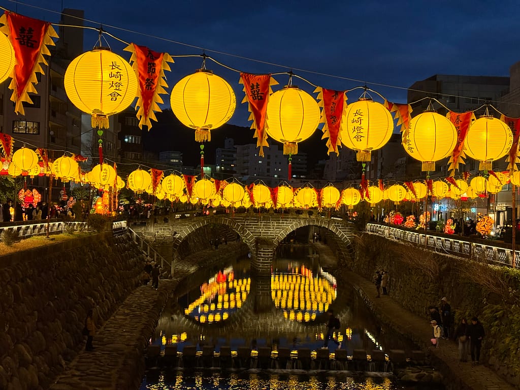長崎ランタンフェスティバルの幻想的な夜。